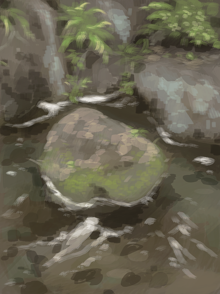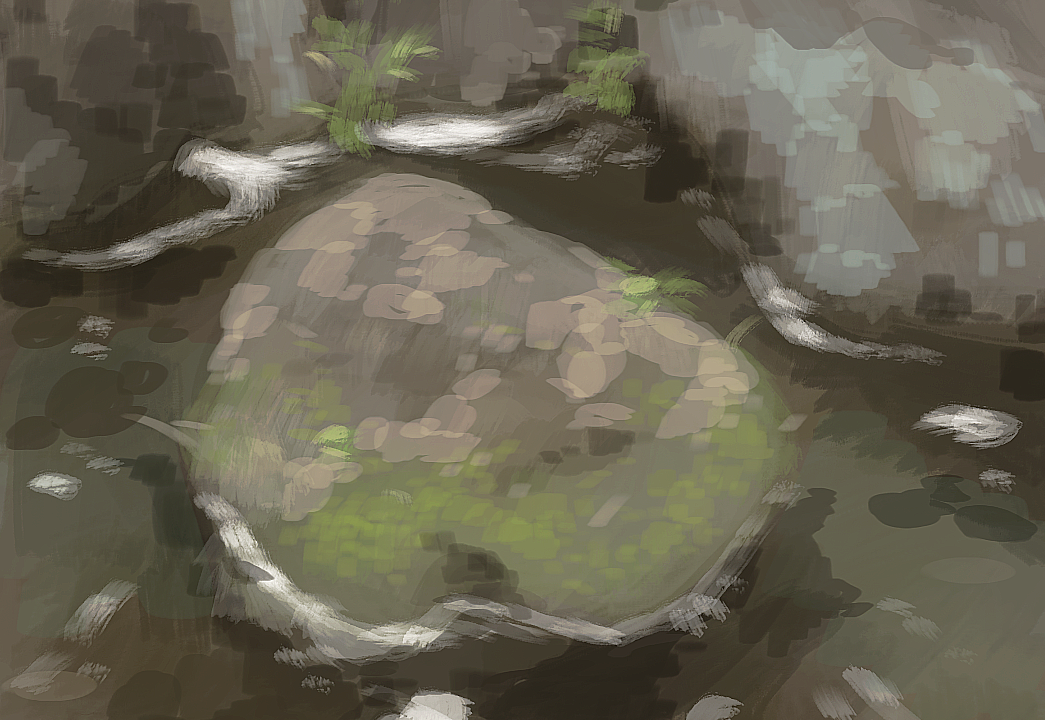 今日は自分で撮った写真を模写しました。この写真を撮った時は5月頃で曇天の日でしたが改めて写真を見るとスカイライトが岩に落ちていたりして岩肌の色味が豊かですね。下の画像は写真との比較です。もう少し時間があれば水面の中の岩も描きたかったな…