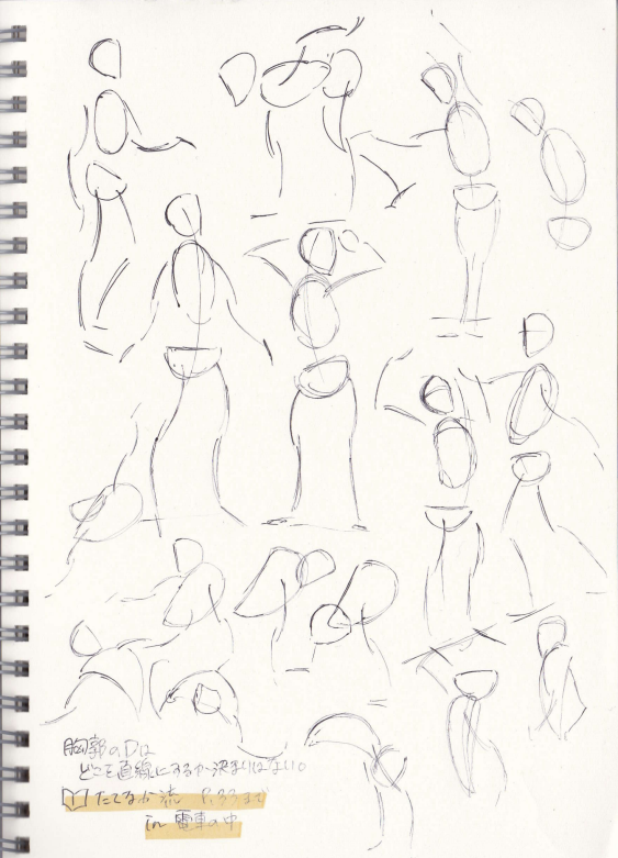 こちらは人体クロッキーです。本当はずっとずっとやりたくてなかなかできていなかったのですが今日ついに電車の中で描けました。こちらも細々と1日1体描けたらOK!くらいの軽い気持ちでやっていこうと思います。