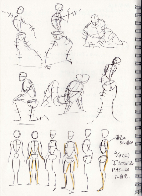 手足は2本のラインで表現するのですが、このラインは見やすいだけでなく肉付けの際にとても役立っていると気が付いたのが今日の学びでした。