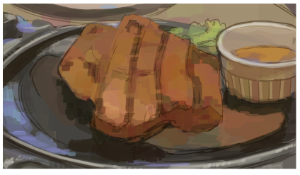 年始に食べたステーキの写真を模写しています。描きだし30分くらいです。私は線画を描かずに書き進めることが多いのですが、円錐とかはちゃんと形取ってあげないと途中っぽく見えますね…Photoshopは円を描くのに苦労しないので明日はちゃんと形をとってみようと思います。