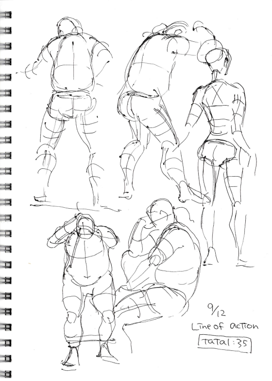 Line of actionを見ながら描いたもの。重心が取れていないですね…明日は人物描く上での重心の取り方などを調べてみます。