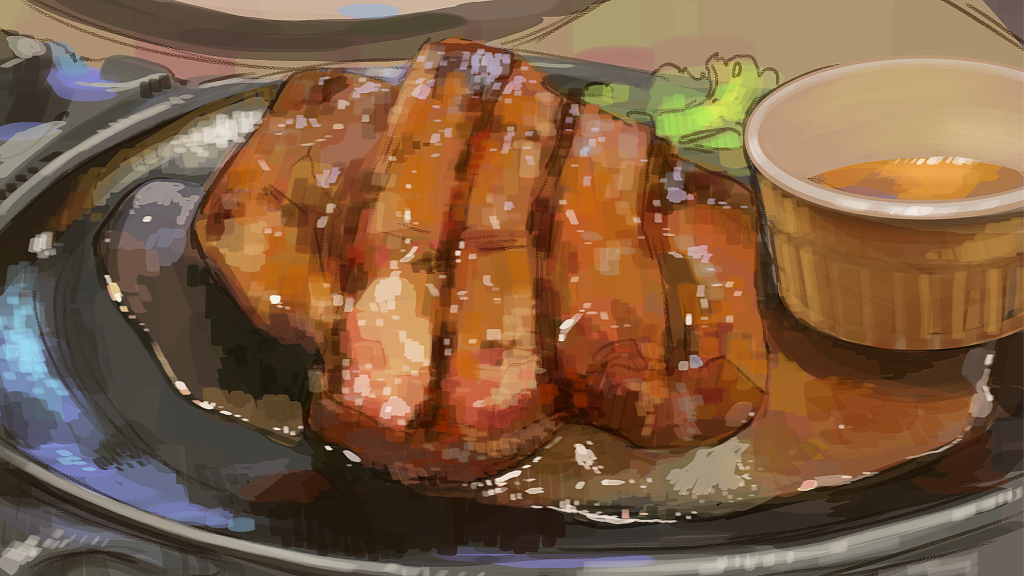 未分類 完成したステーキの絵とHEAVYPAINT yuru-elog 2023年9月15日 今日の作ったもの①:ステーキの写真模写完成 ステーキの絵が完成しました。光沢がたくさんあって描き込むのが楽しかったです。明日からまた別の絵を描こうと思います。 今日の作ったもの②:HEAVYPAINTの絵 HEAVYPAINTというペイントアプリを買って描いてみました。制限の多いアプリではありますが、色選びの練習になるとの事。1枚目はレイヤーの使い方がわからず微妙な感じになってしまいましたが使い方を考えつつたくさん描いていこうと思います。